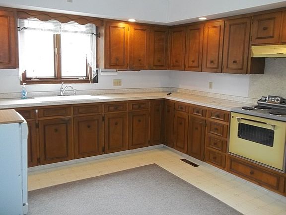 Home features 3 bedrooms, large eat in kitchen, front facing living room, 2 baths, sunporch, and attached one car garage. All appliances included with portable dishwasher and dehumidifer. Has high efficiency furnace and newer water heater. Unfinished basement with outside sump pump And inside sump pump.Home needs updating with flooring and paint inside/outside. Home has a sunporch on back with sliding doors. Not heated. SOLD AS IS. SELLER WILL NOT DO UPDATES.