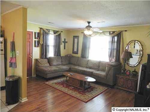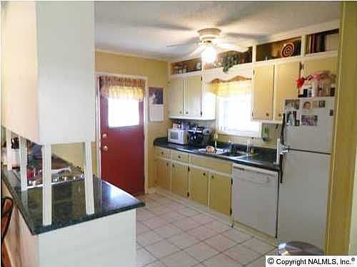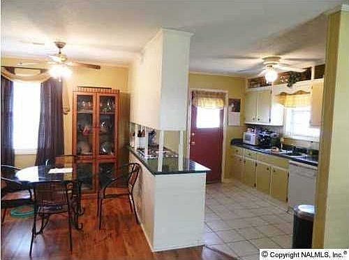 Cute bungalow style home w/vinyl siding, treed lot, fenced yard, storage building, cute cobblestone walkway, patio, covered porch, and more. Home features 3 bedrooms and 1.5 baths. Open floorplan,laminate almost new, bedroom carpet less than 6 months old, roof installed 02/12. Getting new vanity in hall bath.
