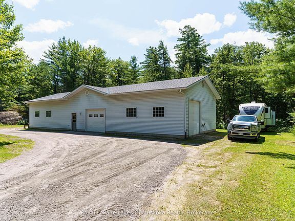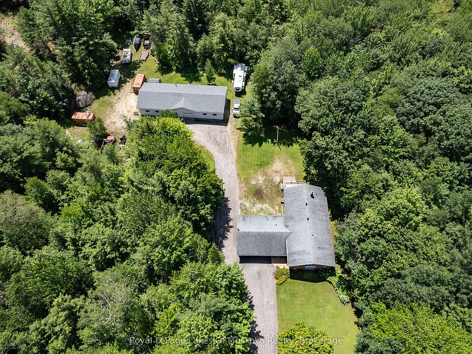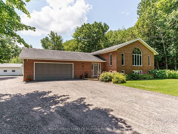 Book your showing for this wonderful custom built family home sitting on 3 acres with an amazing 2400 sq ft shop! Easy hwy access but set in a quiet leafy neighbourhood with lots of level land for parking. The brick home has grand vaulted ceilings, large windows and beautiful hardwood floors. Featuring 3 main floor bedrooms, including a primary with a walkout and ensuite, this home suits a large family. The lower level offers so much finished space including a large bedroom, a workout room(which could function as a 5th bedroom), an office, a full bath and a massive rec room. There is a utility room with great storage space and a cold room off the back. The main foyer is welcoming and features a powder room, laundry room and walkouts to the attached double garage and the backyard. The well landscaped yard bursts with perennial gardens and mature trees. The back shop would be great for any tradesperson or ?? Don't miss this great package only minutes South of Gravenhurst, just off highway 11 and a stone's throw from Kahshe Lake! Enjoyed by the same family since construction in 1990. This could be exactly what you've been looking for!