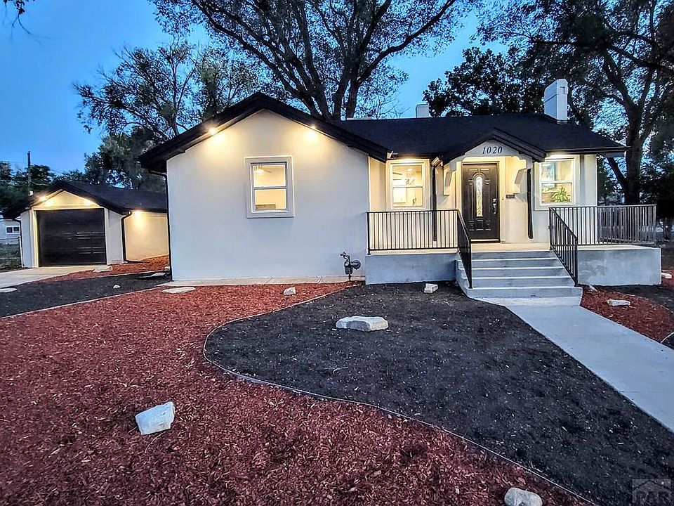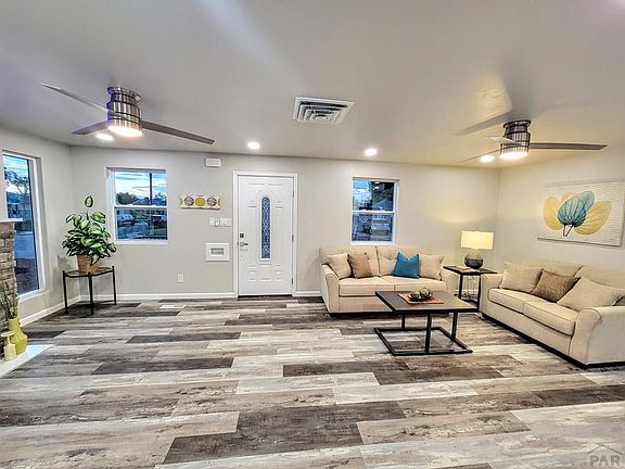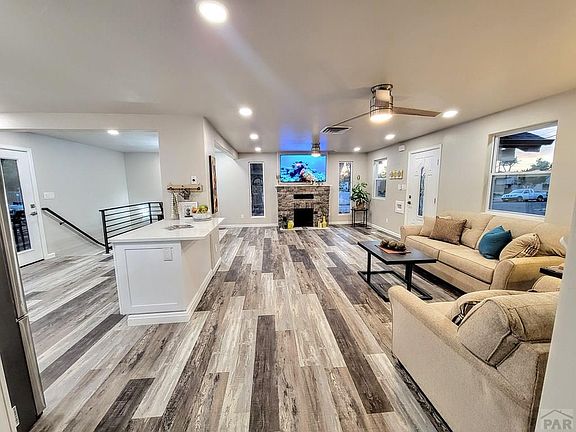 "New Lower Price!" Excellent craftsmanship abounds in this beautiful southside rancher! This gorgeous home has been completely renovated from the ground up! It is essentially a brand-new home built on "good bones". Open floor plan with quality finishes throughout. New electrical, plumbing, roof, gutters, duct work, kitchen, bathrooms, flooring, paint, light fixtures, remote ceiling fans, new high quality roof top evaporative cooler, front porch, concrete walkway and windows! The 65" flat screen TV upstairs and 75" flat screen TV downstairs that are installed over fireplaces are included. This home is built on a corner the size of approximately 3 city lots. The front yard has new low maintenance landscaping. The huge fenced in backyard is a clean slate to finish as you please! This is your chance to own a high quality, permitted, remodeled home in a well-established neighborhood close to I-25, shopping schools with St. Mary Corwin Hospital and a fire station nearby! It would also be a great investment property for a short-term rental to house traveling nurses, steelworkers, etc. Schedule your private showing today!
