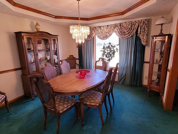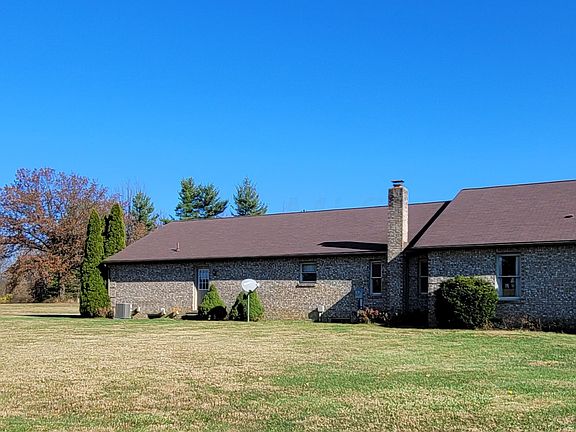This Custom built, all brick ranch home on 3 acre corner lot features many classic updates. Large foyer with beautiful entry door and side lights and coat closet. Kitchen has cherry cabinets and eating island, 2 pantry areas and laundry area close by. Ceilings are accented with decorative designs in each room and a trayed ceiling in the dining room. Owner suite has private sitting and dressing area with 2 closets one a walk-in. Both full baths include a linen closet. Family room has a brick hearth but wood burner is not present. The home has a 2 car attached garage and and additional 3+ car sized garage or outbuilding with electric, 2 garage overhead doors (one with an opener) and storage shelving.