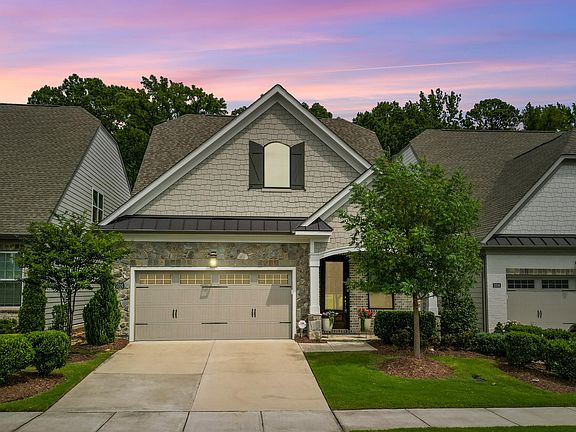 Luxurious West-facing Ashton Woods 2020 villa nestled in the sought-after Savaan community. Boasting over $136,000 in designer upgrades, this impeccably maintained home offers a main-level primary suite and an open floor plan that maximizes space and natural light. Home office on the main floor. High-end finishes, including modern fixtures, neutral color palette, and stylish flooring, create a sophisticated ambiance. The gourmet kitchen is a chef's dream, featuring a farmhouse sink, gas range with pot filler, microwave/oven wall combo, a walk-in pantry, and a convenient breakfast bar. Retreat to the first-floor primary suite, complete with a spa-like bathroom featuring a super shower with bench, extended dual vanities with center cabinets, and a spacious walk-in closet. Upstairs, discover a versatile open loft area, two additional bedrooms, and a bonus walk-in attic storage. Enjoy peaceful mornings on the screened porch, overlooking a charming flower garden. Additional upgrades include Ply Gem Premium windows, epoxy garage flooring, and the signature pyramid ceiling in the primary suite. Ideally situated in Cary, this villa offers easy access to Research Triangle Park, Raleigh-Durham International Airport, and top-rated schools. Wegmans and several additional groceries and dining just around the corner. All yard maintenance by HOA. Community amenities include a pool, park, dog park, and walking trails.