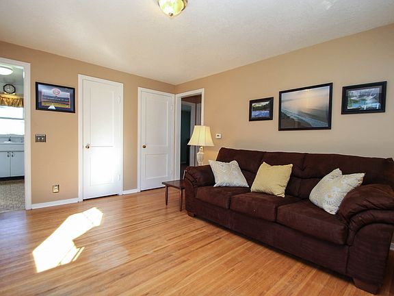 Meticulously maintained, neat, clean and dry this home has newly remodeled main bath with new fixtures, 2 bedrooms, another full bath in basement. Hardwood floors, 1.5 car garage, vinyl siding, entry foyer, fresh paint, full walkup attic, vinyl windows. Basement is roomy, neat & dry! Fruit cellar, workshop, full bath, laundry room w/laundry tray. Appliance included in as-is condition (frig fairly new).