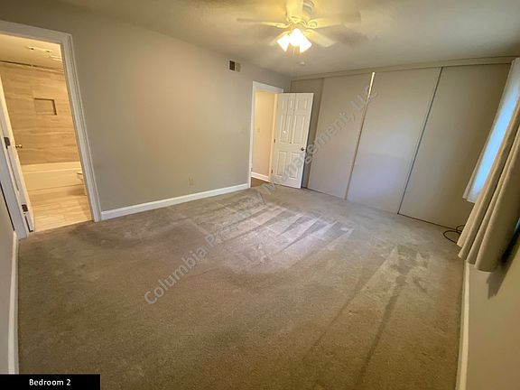 Two bedrooms, two bathrooms and large combination living/dining room. Kitchen includes stove, refrigerator, microwave and dishwasher. Washer and dryer connections. Outside storage. Central heat and air. Carpet, vinyl plank and tile floors. Two parking spaces off street. Water included. Access to community pool. Pet restrictions.