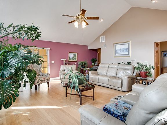 - Cathedral/Vaulted Ceiling, Ceiling Fan(s), Kitchen Island, Kitchen/Dining Room, Large Master Bedroom, Main Level Living, Primary w/Ensuite, Primary on Main Level, Pantry, Walk-In Closet(s), Workshop