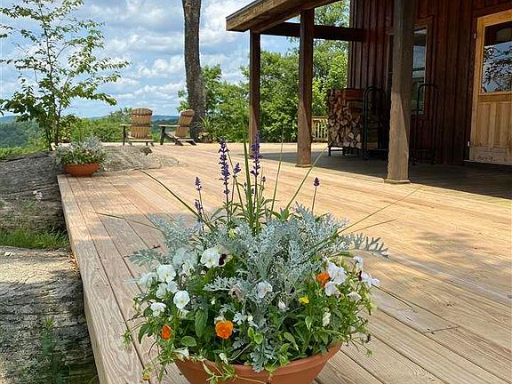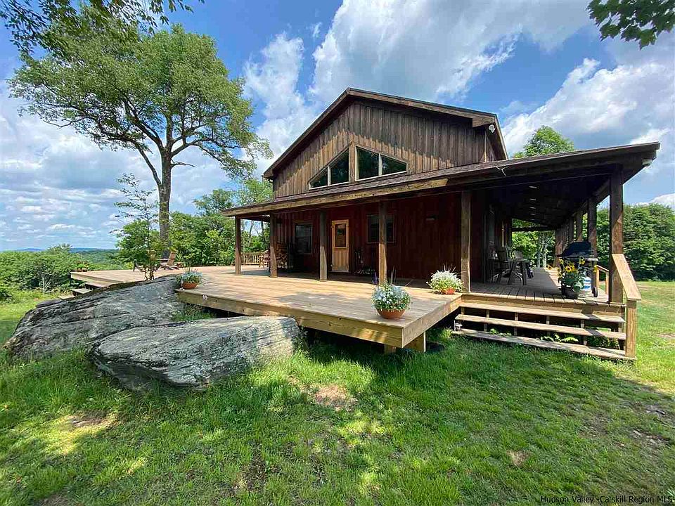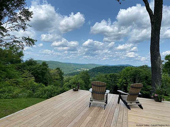 Custom built, one of a kindand VIEWS to DIE FOR! If PRIVACY & SECLUSION are at the top of your wish list then here it is, look no further. No sounds but those of nature, top of the mountain sanctuary with some of the most stunning long views. Once you turn off the main road & onto this town maintained road you know you are heading somewhere special. The anticipation only increases as you travel up the long private driveway, up the hill thru the magical forestwith large fern beds, dramatic rock out cropping & all sorts of wildlife delighting in this unspoiled landscape. As you reach the top the canopy opens to a beautiful, large, mountain top plateau where you will immediately be captured by the endless views& the feeling of being on top of the world. Perched on what feels like the edge of the hill is this beautiful home, built to blend in with the surrounding nature. Enter thru the mud room with tiled floor to be surprised by the full hight cathedral ceilings of the living space with impressive custom beams, large windows, cherry floors and a beautiful custom built, one of a kindstone fireplace, the work of a talented and well known local artisan. The wood burning insert will provide atmosphere and comforting comforting heat. The kitchen with granite counter tops is open to the living space making entertaining and family time easy and seamless. Access to the amazing &extensive deck and covered porch is from the great room. It is here that you will spend most of your time in fair weather months as it will be hard to take your eyes off of the captivating views or the uninterrupted night skies. The master suiteis sun filled and offers double closets, ceiling fan and bathroom with walk in fully tiled extra large shower. The guest bedroom is comfortable and bright with a full bathroom just down the hall. Upstairs is a very large and bright loft area currently used as the 3rd bedroom, it could easily be divided to create 2 rooms or a large master with ensuite bath. With cherry wood floors, large windows, high ceilings & custom details this house is warm and inviting and manageable in size. The full size, poured concrete basement is walk-out with double doors for ease of moving large items, could be finished for extra family room or work space. At the basement level are all mechanicals, laundry room & additional storage room for sports gear or cold storage. To complete the picture you will find a custom built 50x25 garage with concrete floor, hot&cold water (used seasonally), heat (wood stove); a 30x30 barn with gravel floor & electricity; wood shed (holds 4 full cords of wood) and additional garden shed; large fenced in livestock area divided into several paddocks, with electric fencing & frost free hydrant; many choice locations for flower & veggie gardens or orchards. Excellent location, just a short drive to Andes, Bovina & Delhi. 2hr40 min. from the GW Bridge. But....once you arrive you will not want to leave! Call agent for a private showing.