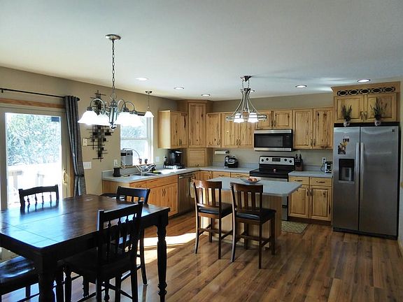 This home will not disappoint!! Good size master suite with walk-in closet and 3/4 bathroom. Upgraded hickory cabinets in the kitchen with lots of counter space, stainless steel appliances and island with breakfast bar. Open floor plan great for entertaining. Dining room has slider leading to deck. Large fenced backyard with trees along the border for privacy, nicely landscaped. Living room on main has large windows and vaulted ceilings. Daylight basement has family room, plus two additional bedrooms. Oversized double garage.