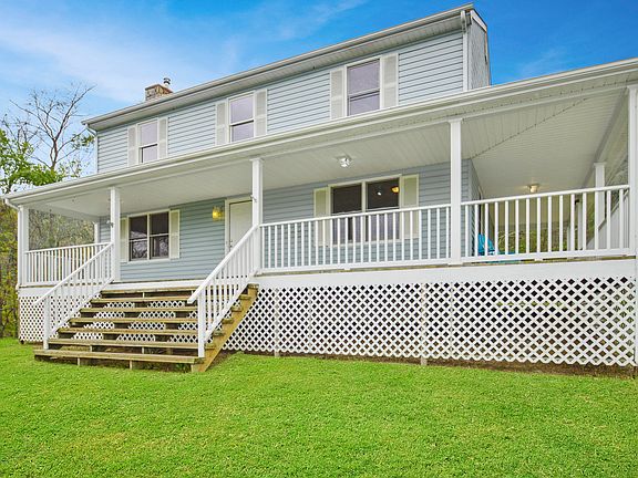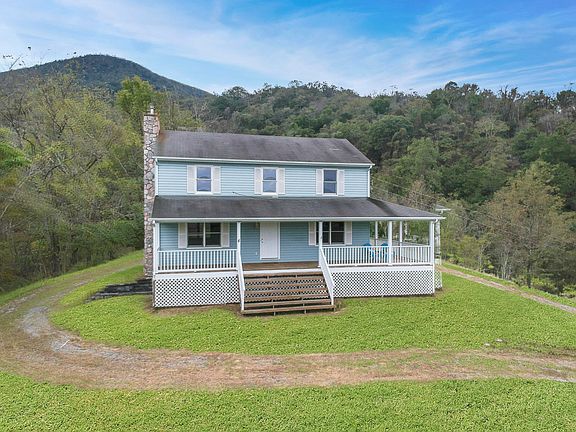 Stunningly scenic mountain farm of 236 +/- acres at base of McAfee Knob has miles-long views from the expansive front porch of a modern farmhouse. Complete seclusion at end of mile-long private road. Two ponds totaling over 1/2 acre, streams, extra home, storage sheds, miles of trails, and approx. 14 acres of pasture complement this forested getaway. The 3BR, 2.5 BA home has freshly refinished hardwood floors, fresh paint, & other updates. Stone fireplace in LR. Full, walk-out basement w/ plenty of space for storage, workshop, etc. Low taxes, unrestricted. Perfect for hunt camp, homestead, prepper retreat, or private country estate. Priced to sell well below assessed and appraised value. One-year home warranty offered to buyer.