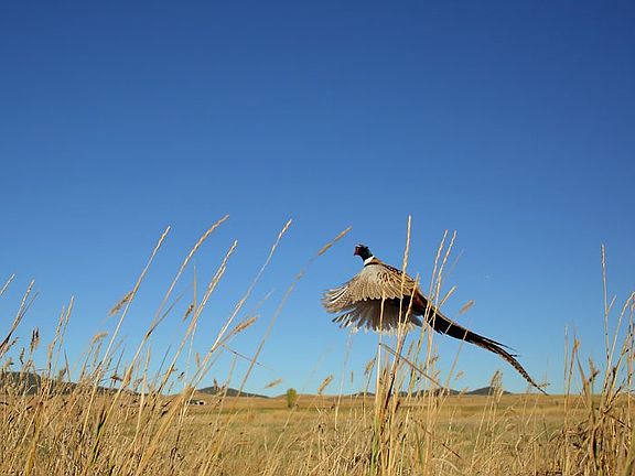 Irrigated farm ground in Crook County Wyoming with unique pheasant hunting business for sale. A total of 434 Acres consisting ofa nicely balanced grass and irrigated farm ground ranch. 230 acres are divided into several pastures of rolling hills and creek nestled between pine-covered vistas. The active creek provides a mecca for wildlife habitat, not only for the pheasant , but, native deer, antelope irrigation and a stocked trout pond. A clean cabin for hunting guests and vacation rental income overlooks the river valley and crops while a combination living quarters, office and shop are located across the county maintained road. A private well supplies ample water for both buildings, an RV hook-up pad and is piped to a bird pen, horse corral and tanks running to the North end of the property. Conveniently located 14 miles from Sundance, this special property has a lot of possibilities for a continued hunting operation, horse property or ranch.