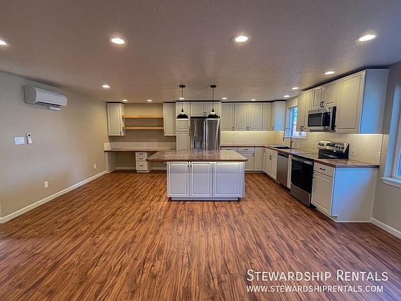 *These pictures are of a similar unit* Fully remodeled 2 bed / 1 bath apartment perfect for UO college students! Includes stainless steel appliances, mounted flat screen tv, sound bar stereo, and entertainment center in living room. On site laundry and tandem parking for a monthly fee - per spot. $50 monthly utility fee covers water, sewer, and garbage. Resident(s) are responsible for electric. *Property showings for approved applicants ONLY Apartment Close To University Of Oregon Ductless Heating & Air Conditioning Limited Paid Parking Parking Through City Vinyl Plank Floors Vinyl Windows