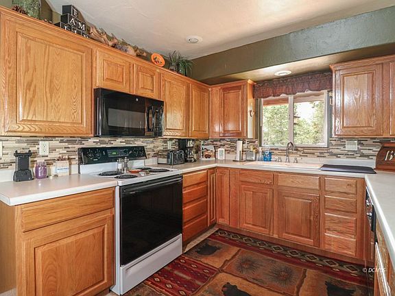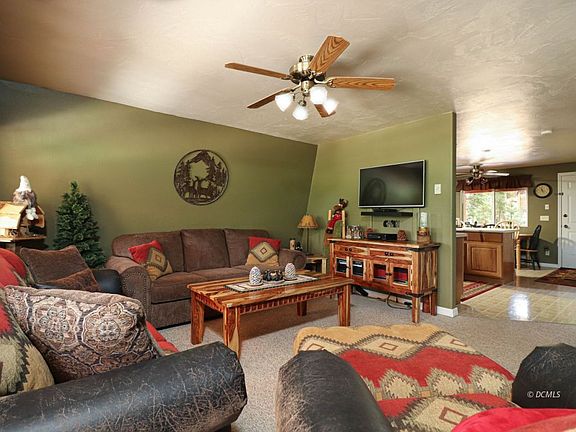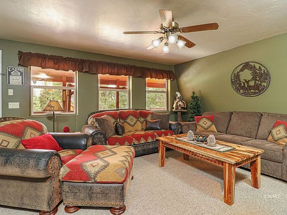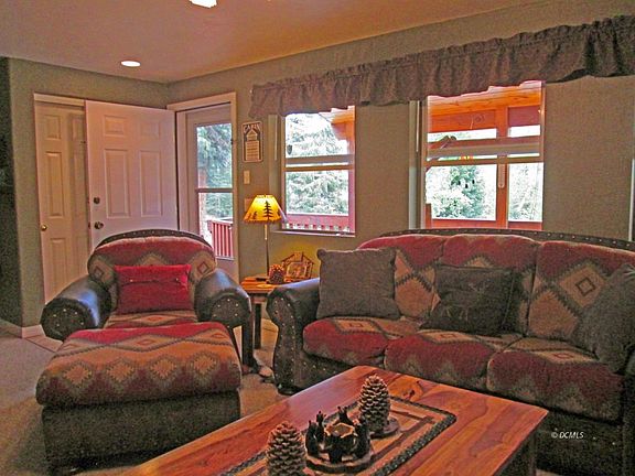 This great 3 level cabin features 3 bedrooms & 3 baths. Main floor has a large living/TV room with a new queen sofa sleeper and other great furnishings. It opens to the kitchen with counter bar and stools & dining table set. The kitchen entry door goes out to a covered deck with picnic table, BBQ grill and stairway to the super nice back yard. There's a big bathroom on main level with pretty wood accented garden tub. The upper level has two bedrooms, one with a king and two twin bed unit and plenty of closet space. 2nd bedroom features a lovey king bed and plenty more closet space. A full bath also on upper level. Lower level has a walk out bedroom with king bed to a covered patio. 2 car tandem garage and a bath/laundry room accessed through the garage. The cabin has a covered front deck entry with swing bench, also covered side deck for lots of great relaxing space. The lot is beautifully cared for with a fire pit area and horse shoe pit for outdoor fun both day and night. Most furniture, TV's. kitchenware ,bed linens, garage workbench, metal cabinets, white storage lockers and storage racks are included. You need to see this cabin soon, you'll fall in love with it.