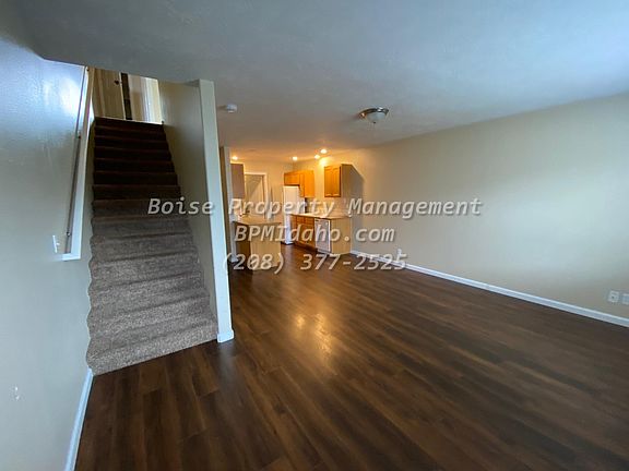 Cozy two bedroom two bathroom home located centrally in Nampa near dining, shopping, and grocery. The entry way opens into a deep hallway passing the kitchen, with open counter tops and matching appliances. The hallway leads to the large living area with beautiful dark lvp, great natural light. Off of the kitchen is the guest half bath and laundry hookups, and garage passthrough. Tucked away in the back of the unit are the stairs, located upstairs is both bedrooms as well the full bathroom. The bathroom gives access through the hallway at the top of the stairs and the large primary suite. This home has an attached one car garage and one car driveway! Tenant is responsible for utilities. One car garage and one car driveway available. No smoking please. Pets NOT permitted. 13 or 24 mo. lease. Washer dryer hookups. Professionally manged by Boise Property Management