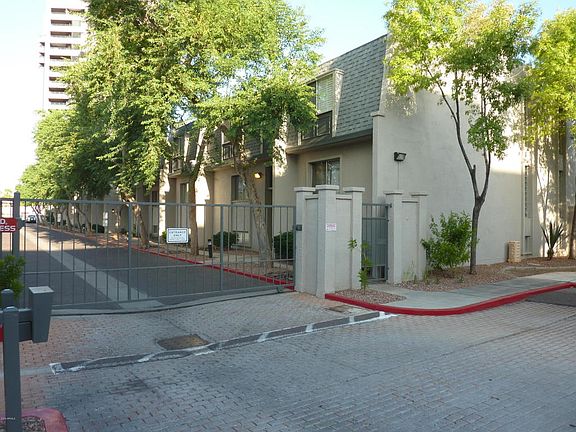 This extremely well maintained gated community is conveniently located to mid-town/downtown/airport and nestled in between Phoenix Country Club and higher priced real estate. The remodeled 1br/1ba unit boasts designer lighting, textured walls, engineered wood floors, concrete kitchen counters, stainless steel appliances, plantation shutters, and dual barn doors in bedroom. The unit also boasts en suite laundry and a charming outdoor patio. Roof and exterior paint completed in 2014. HOA includes electricity and AC!! An amazing value for the money.