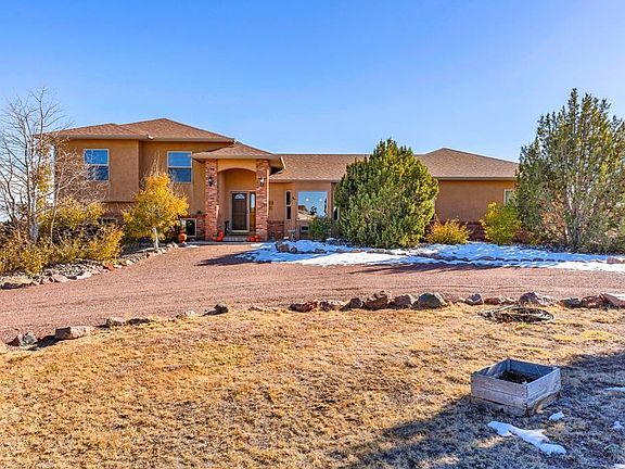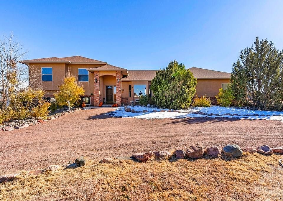 Incredible value on this stunning Pueblo West custom built home situated on a cul-de-sac on 2.47 acres! This 4-level One-owner home features a well designed floor plan with many upgrades throughout. Includes 3BEDS 3BATHS with nearly 3000 sqft of living space with room to add a 4th bedroom in the mostly unfinished basement. Main level as you enter the home is all open and features hardwood floors throughout & vaulted ceilings. Gorgeous updated kitchen includes granite counters, kitchen island, custom range hood, built-in appliances plus an oversized pantry you will appreciate. Upper level includes 2 spacious bedrooms including the primary bedroom suite with its own private deck. Lower level features the 3rd bedroom & huge family room with wet bar. All 3 bathrooms have tile floors & tiled tub/shower surrounds. Nice sized laundry room with tile floors & wash sink with access to the outside. Basement has 2 finished closets PLUS an awesome VAULT ROOM. 3-CAR garage is fully finished with the 1-CAR bay currently set up as a workshop with built-in work benches & air lines. Outside is equally impressive! Covered patio in back. Open trex deck off primary bedroom. Pristinely landscaped in front and back with mature trees throughout (Junipers, Pinons & Aspens). The acreage in back is fully fenced. Pride of ownership is evident when you tour this well-built home. Hurry and schedule your showing today. You won't be disappointed! A MUST SEE home that's priced to sell!
