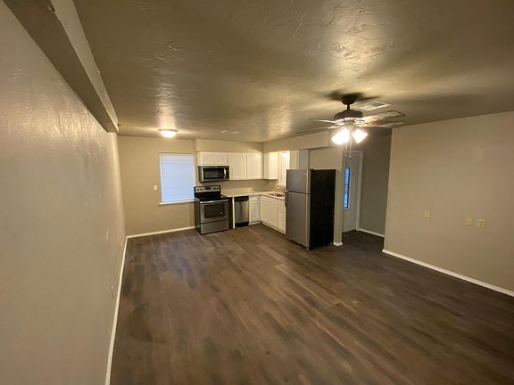2 bedroom / 1 bath apartment located behind the Wal-mart just east of Perkins Road (1 mile from campus). Recently remodeled with laminate floors throughout. +Ceiling fans and closets in both bedrooms and living area. +Open concept kitchen, nook, and living. +Stainless appliances (refrigerator, dishwasher, range, and microwave). +Central heat and air. +Downstairs unit. +Laundromat onsite. Owner pays water and trash. Tenant is responsible for electric (and internet/phone, if desired). The property does not have natural gas. There is a laundromat on-site with 4 commercial washers and 4 commercial dryers. Exterior security cameras. There is ample parking for up to 2 cars per unit (no more). No smoking allowed inside the unit. Security deposit equal to first month's rent. Up to 1 pet allowed with $250 non-refundable pet deposit.