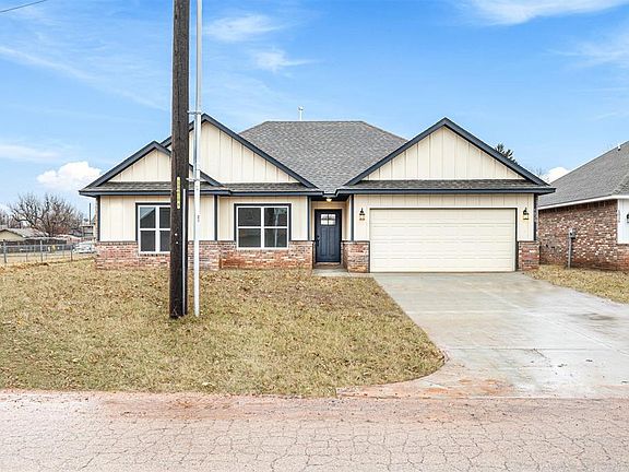 Welcome home to 1020 E Watts Street in El Reno! **Seller is offering $2,500 towards buyer's closing costs and prepaid items!!** Step into luxury with this brand new 2023-built home that seamlessly combines modern design and comfort. This three-bedroom, two-bathroom home welcomes you with a contemporary exterior and sets the tone for sophistication and functionality. As you enter, the vaulted ceilings in the living room immediately create a sense of spaciousness. Natural light floods the room, highlighting the stylish electric fireplace, a perfect centerpiece for cozy gatherings. The open flow effortlessly connects the living room to the kitchen, featuring custom cabinets and sleek granite countertops. All three bedrooms are generously sized, providing ample space for personalization. The master bedroom stands out with an accented ceiling, leading to an en-suite bathroom that is a true retreat. Double sinks and granite countertops enhance the luxurious feel of the master bathroom, creating a spa-like atmosphere. The attention to detail is evident throughout the home, from carefully selected fixtures to a thoughtfully chosen color palette. The backyard is a blank canvas, ready for your personal touch and landscaping ideas and perfect for all your favorite outdoor activities! This one has so much to offer! Don't wait! Schedule your private tour today!