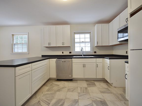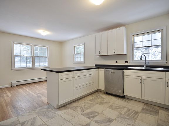 Come and see this renovated 2 bedroom, 2.5 bath ranch home situated on 3 acres. With a finished basement, this home offers a flexible layout to best suit your needs. Hardwood floors on the main level were just refinished and now add warmth and character. The kitchen has been completely renovated with white cabinets, new appliances and flooring. There is space to pull up stools to the peninsula and have a breakfast table. The large living room has a wood burning stove perfect for those cold winter days. There is a bonus room that could be used as an office, formal dining room or formal sitting room. Down the hall you’ll find a renovated full bath, primary bedroom with dual closets and half bath along with the second bedroom. Head down into the finished basement and you’ll find even more living space. The walkout makes it light and bright – there is a family room, space for your favorite hobby and even space for your guests. The clean mechanical room is big enough to also double as storage space. Detached 2 car garage. New gutters. Brand new heating system. Brand new kitchen & baths. Most of the interior has just been painted. Relax and enjoy all of the property has to offer.