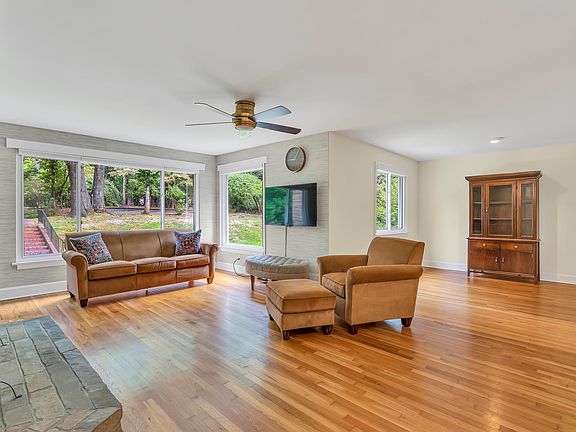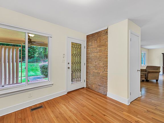 Private oasis located on 4.67 acres on a quiet, dead end street on Spartanburg's Eastside. Mid century modern ranch style home with 4 bedrooms, 3 baths, and spacious living areas. The foyer opens to the great room with fireplace equipped with gas logs, and formal dining area. Rec rom with full bath is great for entertaining! Large kitchen with bright and cheerful breakfast area. Large guest rooms with adequate closets and lots of windows offering natural light. Original hardwood floors throughout all bedrooms, great room, dining room and foyer. Owners suits features large windows offering views of wooded landscape on 3 sides plus large dressing area with several closets. The bath has a sunken tub/shower combo, large vanity and access to guest room that could also serve as a sitting area. The heated, inground, saltwater pool got a new liner in 2020. Extensive patio with built in fireplace and grill. Enjoy views of the pool, patio and woods from the screened porch with built in planter. This is a one of a kind home located in one of the most sought after areas of Spartanburg.