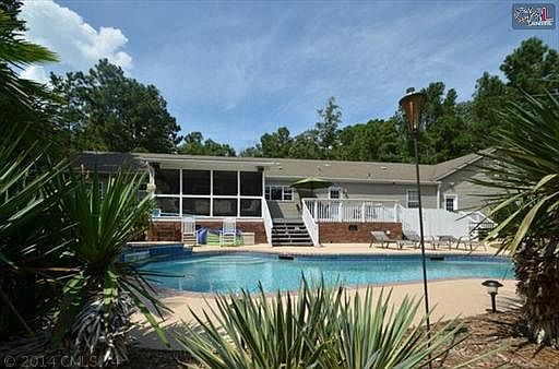 Nestled privately on 2.95 tranquil acres awaits your dream home. Lush landscaping and palm trees around your gunite pool and spa create your own personal oasis. The low maintenance vinyl exterior means that you can enjoy quality time with friends and family in the pool or steal away to the 30x20 detached workshop to start on your latest project, and wait until you see the 1,200 SF garage making a standard 400 SF garage look puny. Inside your 4 bedroom 3 bath one level split floor plan are gleaming wide plank hardwoods and an open floor plan designed for entertaining. It flows effortlessly from room to spectacular room. A corner gas log fireplace and Pioneer flat screen TV Highlight the family room which conveniently adjoins to the kitchen. A spectacular AV system is also included so that you can enjoy your favorite beats on the screen porch or deck with outdoor speakers. When it’s time to eat, prepare the evenings repast on the commercial dual fuel stainless Jennair and clean up with the upscale, super-quiet Bosch dishwasher. There is even a huge walk-in pantry that I bet you can’t find at first glance. Two of the bedrooms share a bath, while the third bath serves your guests and the fourth bedroom. Wait until you see the over 800 SF room over the garage! Imagine the possibilities. When everyone else loses power, you won’t with your own in-line generator. Your master suite is sublime and extras abound throughout like plantation shutters and designer paint. You won’t find another move-in ready ranch home on acreage with a pool and zoned for award winning schools at this low price (includes home warranty). Please call owner directly if agent will not show the house because they want a commission agreement upfront. Don't delay! Agents - commission is negotiable up to 3% when a contract is presented.