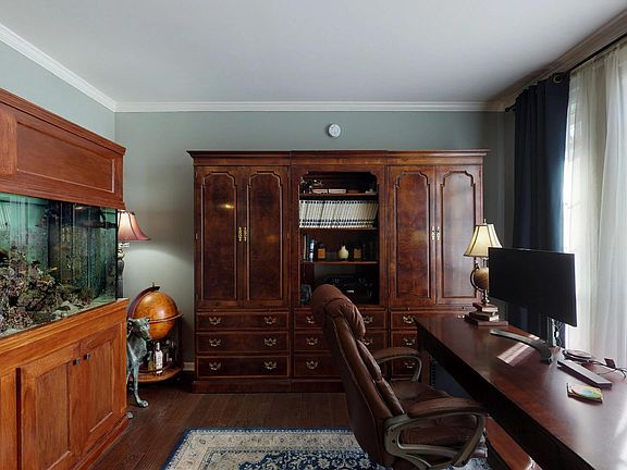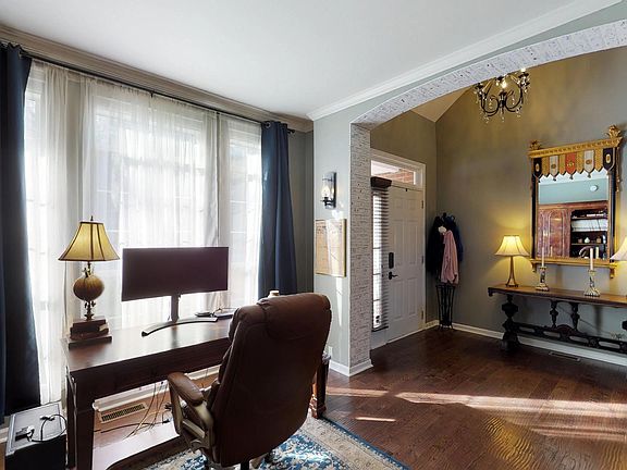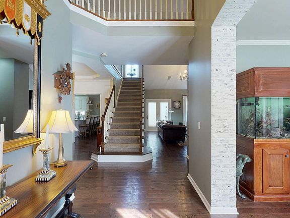 Absolutely stunning home featuring soaring ceilings, fabulous open floor plan, custom finishes including gleaming hardwoods, updated kitchen, gorgeous crown/trim work, new carpet, spacious owner's suite w/ his/her vanities & closets & abundant storage. Plus, enjoy the tranquil setting of the backyard, fully fenced w/ new deck & terraced patio! It's truly a MUST SEE!