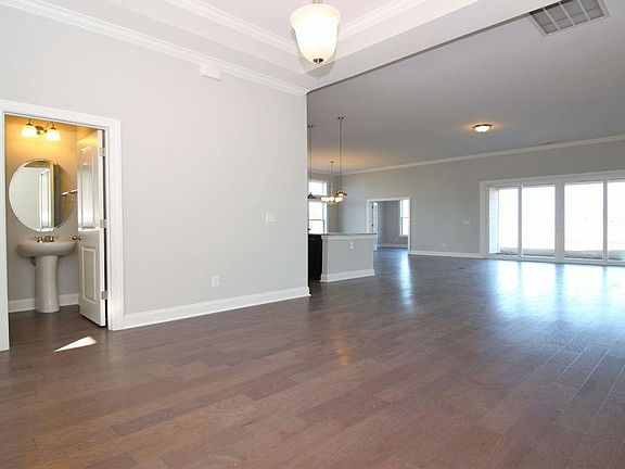 MOVE-IN READY!! Extremely open single level home with 3 bedrooms, 2 ½ baths, an office and a 3 CAR GARAGE. The family room, dining room and kitchen have 11 foot high ceilings and plenty of windows. This home comes standard with hardwood floors throughout your living area, tile flooring in the bathrooms, and laundry. Spacious kitchen with a large island, includes granite counter tops, stainless steel appliances with gas range, 36 inch cabinets with crown molding, and a large work island. Big master suite with huge closet and the owners bathroom has a 5 foot wide tiled shower , and double bowl granite counter tops. Enjoy your large back yard from your covered porch, and there is plenty of room between the homes. Square Footage and measurements are estimates and are to be verified by the purchaser.)