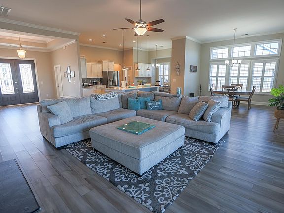 Welcome to your dream home! This beautiful 3 bedroom, 2.5 bath residence boasts over 2400 sq. ft of heated and cooled space, providing a perfect blend of comfort and style with updated flooring throughout giving you a fresh beachy feel. The 3 car garage features epoxy floors for easy maintenance and a sleek aesthetic. You will find plenty of space for your work shop, vehicles, beach stuff and more, complemented by a convenient drop zone as you enter the home at the garage. The open split bedroom plan creates a seamless flow throughout, highlighted by a large living room featuring a natural gas fireplace and custom built-ins. The well-appointed updated kitchen is a chef's delight, with stainless steel appliances, a gas range, staggered cabinetry, large double pantry, tile backsplash, and a spacious center island that is great for entertaining or additional cooking space. Whether you prefer casual dining in the eat-in kitchen or hosting formal gatherings in the dining room, this home offers versatile options. French doors lead to an office or den, providing a space for work or relaxation. The primary bedroom is a retreat in itself, offering a spacious layout with tray ceiling and fan. Your primary bath include double sinks, a tiled shower and walk in closet. Both guest bedrooms are spacious and offer easy access to the guest bath. Beautiful double doors with leaded glass at entry. The home is accented with gorgeous plantation shutters. Enjoy indoor-outdoor living with 12' sliding glass doors leading to a 17x10 screen porch and fenced rear yard. The well-landscaped exterior includes a stamped patio, irrigation system and finished off with river rocks in the bedding. This home is conveniently located near shopping, beaches and golf courses. A perfect blend of luxury & functionality. Schedule your appt today! Square footage is approximate & not guaranteed. Buyer is responsible for verifying.