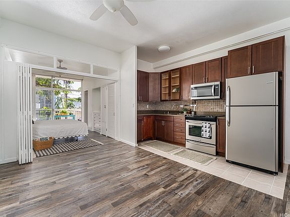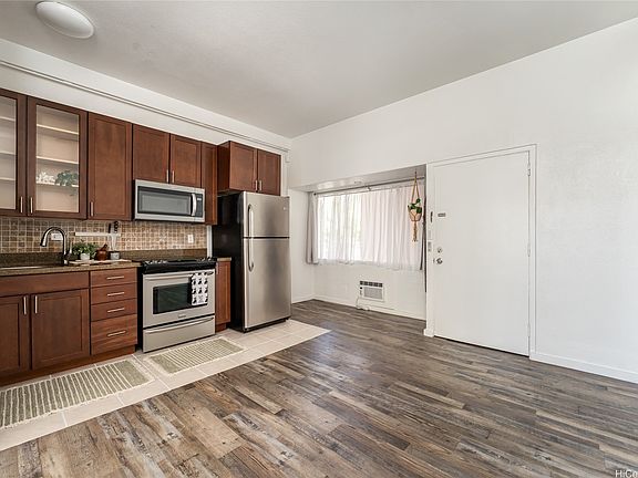 Discover your dream condo in this rarely available corner unit, nestled in a vibrant, retro pink building in the heart of downtown. This stunning property features 1 spacious bedroom and 1 bathroom, perfect for those seeking both comfort and style. Step inside to find luxury vinyl plank flooring that flows seamlessly throughout the bright and airy space, complemented by fresh new paint and modern finishes. The kitchen boasts brand-new cabinets and exquisite granite countertops, making it a culinary haven for any cooking enthusiast. With 10-foot ceilings and built-in storage, this condo offers both functionality and sophistication. The large lanai invites you to unwind and enjoy the fresh air, while the community pool and recreation area provide the perfect backdrop for relaxation and leisure. For added convenience, a large reserved parking stall is included, ensuring you’ll never have to worry about finding a spot. Centrally located near Downtown, Ala Moana, Kakaako, and Manoa, you’ll have quick access to shopping, dining, and entertainment. This property is pet-friendly. Special Assessment of $71.89 through December 31, 2025.