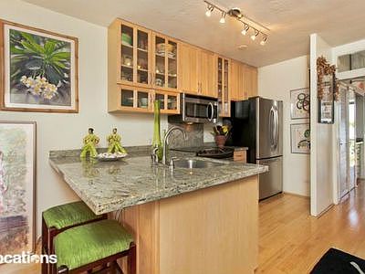 This 3rd floor cozy condo with high ceiling has 1 covered parking, pool, and a lanai that's great for breakfast, lunch, dinner or relaxing, and comes with a slice of ocean view. Nearby trees offer extra privacy. The location is close to the Museum of Art, Downtown & Chinatown and easy H-1 access. Beach and Ala Moana Shopping Center are 2 miles away. This tasteful condo is perfect for a bachelor or professional. In addition to two ceiling fans there is an air conditioning unit. In-building laundry machines available on 2 floors. The building has security gates and is safe, quaint, quiet and tranquilan example of bygone charm in a residential area. Queen's Hospital (1 mile), Straub Hospital (0.5 mile), and Kapiolani Medical Center (1.5 mile) are nearby as well, as are convenient bus stops. Please note, the wall art is not part of the furnishing. Showing by appointment. Include phone number to expedite communication.