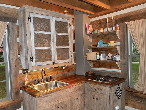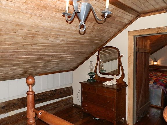 Unique lake home near Jamestown Marina! You will not find another one like this lake house made with logs reportedly over 150 years old. The house features one bedroom on main level and two sleeping areas upstairs that is accessed by a wonderful spiral staircase. A modern full bath, central heat and air, modern plumbing and electric wiring, county water, and updated Bosch dishwasher, stainless steel finished refrigerator, oven, and GE stove-top makes this home very livable. Flooring in most of the house is 7'' poplar planking and many of the cabinets and cupboards are primitive, yet functional. Sit on the covered front porch and gaze at the seasonal view of the waters of Lake Cumberland. After a busy day on the lake, relax inside in the garden tub with waterfall showerhead! This rustic log cabin with addition may be just what you a looking for in a retirement or vacation home.