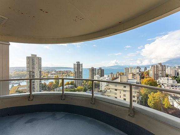 Sweeping, breathtaking water and mountain SUNSET views of English Bay and beyond. This sunset view, 2 bed 2 bath corner (with 2 parking) home has been fully and tastefully renovated to create a spectacular residence. Enjoy sunsets & fireworks from your oversized 125 sq ft balcony. The large master bedroom ensuite has a big soaker tub and shower. Amenities includes an outdoor pool, garden space, fitness gym, bike room & party room, which are well maintained. This concrete building is fully rain-screened, new hi-efficiency windows, new roof, new elevators & new plumbing. Your heat is also included in your strata fee. Pets and rentals are allowed. Open house Sunday November 13th 2-4 pm.
