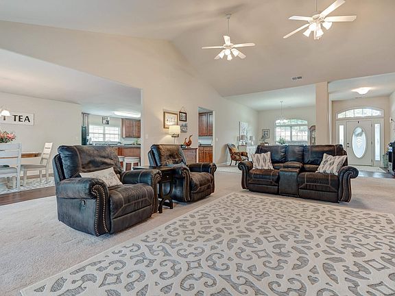 Need a well-kept home that is ONE level and easy to maintain? Here it is! Just a few miles from Veterans Park, I65, Alabaster, Montevallo, and Calera, this location is PERFECT. This home BOASTS vaulted ceilings in the SPACIOUS great room, giving you the perfect spot to entertain family and friends. The electric fireplace will put out plenty of heat (not now!). And speaking of entertaining, the kitchen is HUGE! An abundance of cabinets, NEW backsplash, an island, a breakfast bar, AND a WALK IN PANTRY will make anyone fall in LOVE. The main bedroom FEATURES a tray ceiling and two walk in closets. Outside you'll ENJOY the fenced yard, open deck, and THIRD GARAGE, which has power. Make it a workshop, store your classic vehicle, or make a home gym! Or a She-Shed! The sellers LOVE how quiet the home is and the low utility bills. They will miss the convenience to shopping, The Tavern, and events at Orr Park and American Village.