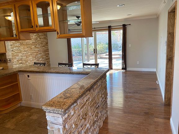 3 bedrooms/1 1/2 baths plus office. Freshly painted inside and out. New carpet in bedrooms. Hardwood floors and stacked stone throughout. Ceiling fans and wall mounted TVs in bedrooms. Kitchen has stainless steel appliances and includes refrigerator. Finished garage with lots of storage, includes washer and dryer. Large covered outdoor entertaining area with gas fireplace, mini fridge, and bar. Renter pays all utilities. First month plus security deposit due at signing. Landlord pays for weekly gardener. No smoking. One pet ok with additional $500 security deposit. No RVs, boats, trailers or dilapidated cars allowed in driveway or in front of house.