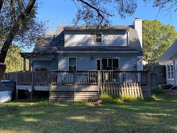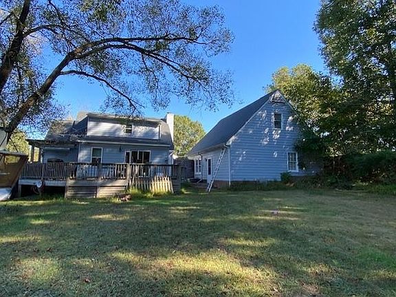 3-bedroom, 2.5 bath Cape Cod has large, flat lot with fenced backyard, oversized detached garage includes 2nd flr bonus room with HVAC. Downstairs master bedroom. Partial wraparound front porch and rear deck. Convenient to HWY 64. With some TLC this house can be the home of your dreams! Being sold "As Is". Refrigerator conveys. Washer/dryer does not convey.