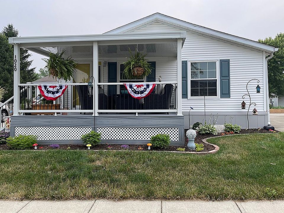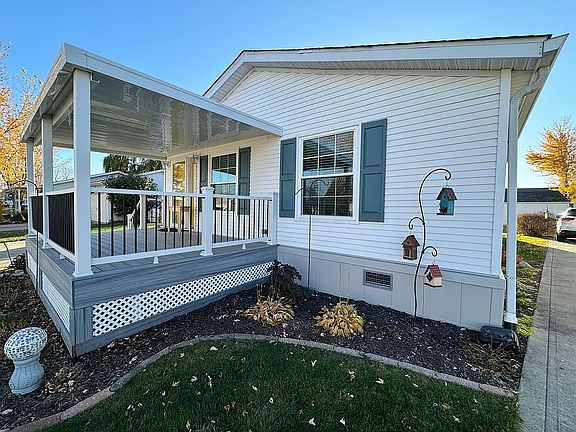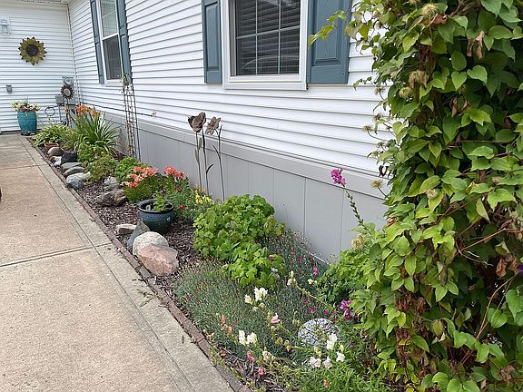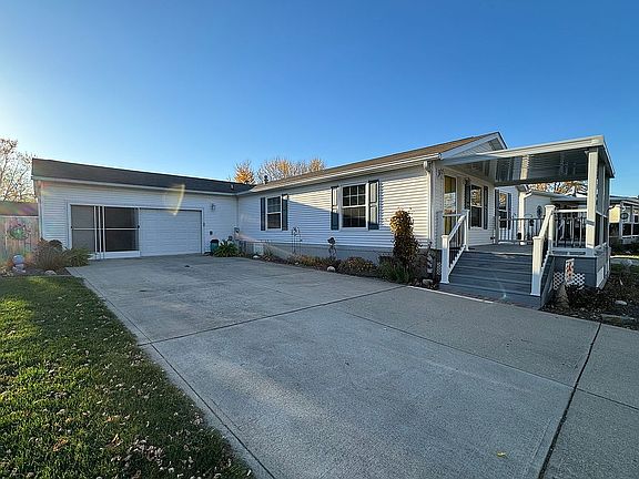 Nestled in the quiet 55+ neighborhood of Edgewater Crossing, this newly remodeled approx. 1500sf 3 bedroom 2 bath home boasts vaulted ceilings with an open floor plan and ample closet space. Updates include: -new paint throughout home and garage, -vinyl plank flooring, -kitchen countertops, -backsplash, -sink & garbage disposal, -RO water filtration system, -ceiling lights, -fully remodeled bathrooms and laundry area, -remodeled mudroom with cubbies -double hung windows and blinds, -exterior shutters, doors & lights, -insulated skirting, -approx 10 x 16 covered composite front deck -Approx 8 x 24’ treated back platform deck -landscaping -garage door opener All remodeling was completed in the last 2 years. Insulated garage is approx 23.5w x 21.33d This low maintenance home includes lawn mowing and trimming, front mulch and snow removal as part of the monthly lot rent, and no property taxes!