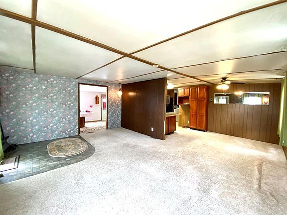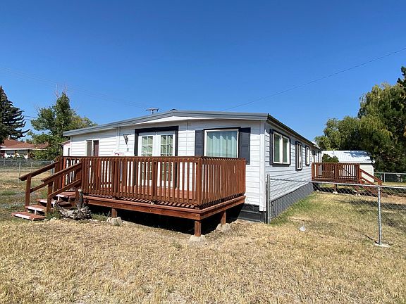 This property is a nice fenced corner lot of Kentucky and W Texas Street that includes a 1972 Doublewide mobile home with an addition. This home offers main floor living including a living room with a dining area, kitchen with newer appliances, laundry area, bedroom with sliding doors that lead out onto a small deck, bathroom, a primary bedroom with a walk in closet and bathroom plus an exit door. The addition adds extra living space to the living room plus a bonus room with a Renni heater. The exterior features include another small deck, 3 storage sheds and a large landscaped yard. This home is not on a permanent foundation so financing may be limited.