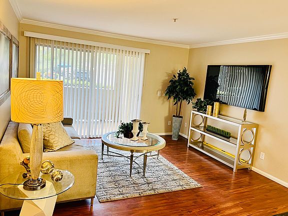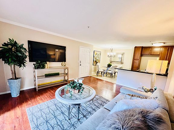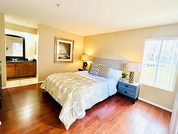 Welcome to Corona Ranch, a beautiful home at first-level, end-unit condo nestled in the highly sought-after gated Triana community. This charming unit boasts two bedrooms and two bathrooms, with both the living room and bedrooms offering direct access to the spacious patio overlooking the lush greenbelt. Inside, you'll find granite kitchen countertops, upgraded laminate flooring throughout the unit, complemented by tiled kitchen and bathroom floors. A newer AC unit was installed just a year ago, along with a recent addition of a newer washer. Included with the unit is one detached parking garage for your convenience. The community amenities are plentiful, including a clubhouse, a large heated pool, two Jacuzzis, BBQ grills, a fitness center, volleyball court, and 24-hour security service. Additionally, the HOA covers trash and water expenses. Conveniently located with easy access to both the 15 and 91 freeways, major shopping centers, and stores are just a few blocks away. Experience the comfort and convenience of Corona Ranch living at its finest! HOA covers trash and water expenses, but all other utilities are paid by tenants