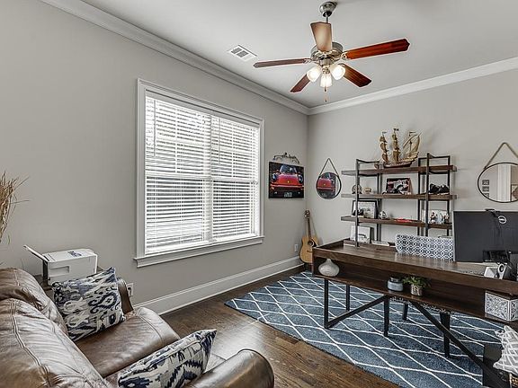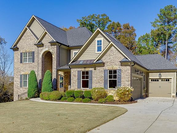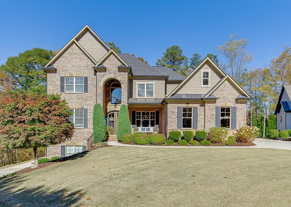 Set within the gated community of Scenic Falls of Braselton, this beautifully designed 4-bedroom, 3.5-bath residence with 3 car garage and a terrace level offers exceptional craftsmanship and a thoughtful layout, including a luxurious owner’s suite on the main floor. From the moment you arrive, the home’s impressive curb appeal and private cul-de-sac location set the stage for the refined elegance found within. Step inside to discover coffered ceilings, custom built-ins, rich hardwood floors, detailed wainscoting, and granite finishes that showcase timeless quality and design. The main floor also features a formal dining room, private office, expansive great room, and gourmet kitchen with breakfast area—each space thoughtfully connected to create an open and inviting flow. The kitchen’s large island and adjoining breakfast area open seamlessly to the great room, anchored by a hand-chiseled stone fireplace, offering the perfect setting for everyday living or entertaining. From here, step out onto the covered back deck overlooking the serene, fenced/in backyard—ideal for morning coffee or evening relaxation. Upstairs, you’ll find 3 bedrooms and 2 bathrooms plus a spacious media room, providing comfort and flexibility for family or guests. The full daylight terrace level ready for your customization is complete with a second driveway access and offers endless possibilities—whether for guests, hobbies, or in-law suite. It opens to a large patio area, extending your outdoor living space. Perfectly positioned on a private cul-de-sac homesite, this home blends elegance, comfort, and privacy in one remarkable setting. Beyond the doorstep, the gated community offers resort-style amenities including a swimming pool, clubhouse, playground, tennis and pickleball courts, and scenic walking trails with waterfalls. Don’t miss your opportunity to make this breathtaking home yours—schedule your showing today!