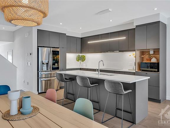 Some photos digitally staged. Welcome 1020 Lunar Glow Crescent, a stunning modern townhome located in the desirable Riverside South community. Boasting approx 2272sqft (as per builder floor plan) of living space, this home offers a spacious & luxurious living experience. Upon entering, you're greeted by an open-concept main floor that features a modern kitchen with s/s appliances & quartz countertops. The living & dining areas are bright & airy, perfect for entertaining or relaxing w/ guests. Over 25k in upgrades, this home showcases quartz throughout, indoor garage w/ inside access, 9ft ceilings on the main w/ smooth ceilings throughout, hardwood floors on main & stairs to the 2nd level. Upstairs, you'll find 3 spacious bedrooms, including a primary bedroom w/ a walk-in closet & a stylish ensuite bathroom. The other 2 bedrooms are well-sized and share a full 4pc bathroom. The 2nd floor loft is ideal for a home office, library or workout area. This home is covered by Tarion Warranty. 2023-03-27