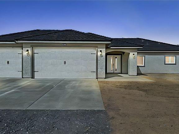 Welcome home to another top quality new build by GB Construction! This home is located in a custom home neighborhood of Pahrump on 1.1 acre with well and septic and no HOA! Property features 4 bedrooms, 3.5 baths, waterproof luxury vinyl flooring with tile in bathrooms, Quartzite countertops, with Quartz in bathrooms, walk in pantry, large kitchen island, custom soft close cabinets, walk in closets, DUAL primary suites, split floorplan, ceiling fans in all rooms, upgraded fixtures throughout, 3 car garage (8’ garage door height), 50 amp RV Hookup, covered front and rear patios and much more!! This builder is known for his high quality of workmanship and attention to detail! Don't miss out, schedule your showing today!