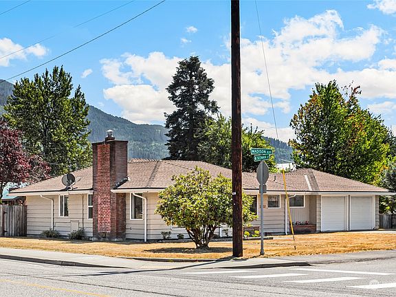Beautiful Mountain views surround this Mid-Century classic rambler. Huge picture windows allow an abundance of natural light. The great layout includes a massive King Size bedroom w/ 3 closets & original hardwood floors. Plenty of storage in expansive laundry room w/ slider leads to patio that’s perfect for entertaining. The fully-fenced, professionally landscaped backyard has fruit trees, alley access & perfect for a firepit or chicken coop. 2 Car attached garage has workspace & storage. All Appliances stay making this move in ready. This ¼ acre lot with mountain views is commercially zoned & located in the heart of downtown Darrington near restaurants, stores, parks & schools. Explore local rivers, hiking, fishing, or archery.