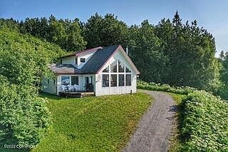 This beautifully-maintained Beachy-built home offers breathtaking vistas of Kachemak Bay and the Spit, as well as complete seclusion and the gentle melody of two neighboring creeks. With 3 bedrooms and 2.5 baths, this gem features a primary bedroom and en suite bath on the first floor. A peaceful retreat that feels like a world apart, yet remains just a stone's throw from town.