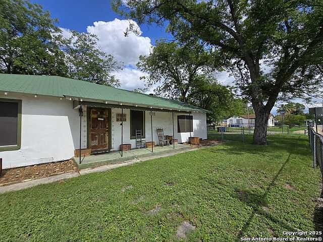 Charming 3-bedroom, 2-bathroom home featuring beautiful hardwood floors and laminate throughout, no carpet! Fully furnished option. This open-concept kitchen seamlessly connects to the spacious dining and living area, creating an inviting space for gatherings. Located just a block from the historic San Antonio Missions National Historical Park and the scenic Concepcion Park, this residence offers a blend of historic charm and modern convenience. Enjoy the vibrant atmosphere of downtown San Antonio, with its rich cultural heritage, dining, and entertainment options as well as the beautiful Mission del Lago Golf Course, all within close proximity. Ideal for those seeking a blend of historic charm and modern convenience in a prime location.