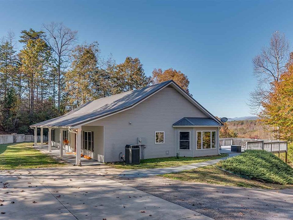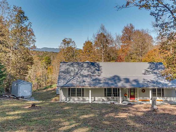 Travel down the long private wooded drive to this magnificent 8.75 acre estate with majestic mountain views. This serene homesite is surrounded by a well landscaped lawn, mature hardwood trees, river rock and a flowing natural spring fed creek. This 3 bedroom, 2.5 bath custom home has a full length covered porch (372sf) on the front side and a cement patio area and deck (1014sf) on the back side. Enter the foyer with coat closet and hall bath into the Great Room. Spacious kitchen includes breakfast bar for four, Jenn-Air Smooth cook top and grill, Double ovens, (one convection option also) , and all stainless steel appliances. Living room with gas fireplace and two double doors provides brilliant natural lighting. Dining area is uniquely positioned into bay window. Large pantry and laundry room is conveniently located to side of the kitchen. French doors provide you access to the first bedroom, down the hallway to second bedroom on the left, master on the right and bath at the end of the hallway. Large master bedroom with his & hers walk in closets. Restore yourself in the dream bathroom with king size shower (dual shower heads) and relaxing Jacuzzi tub. Relax and read in the office/study adjacent to the master bedroom. Finally, enjoy your game of choice or entertain family/friends in the sun room with the over-sized windows and double patio doors. Life begins as you exit the home onto the grand patio/deck where memories are made as you share a meal, relax and take in a sunset with the backdrop of majestic mountain views! Estate is complete with separate large two car garage (lots of storage), workshop with two work surfaces(lots of storage) and even a storage building for all of your seasonal decorations! Garage and workshop both have electric power with dual LED lights! Complete driveway is smooth asphalt with circle drive and concrete pad next to the home. Home was constructed with quality materials from beginning to end. Homeowners built this home to last!! Schedule a showing and see this dream home today, please do not drive up the driveway without letting listing agent know or being accompanied by agent with appointment.