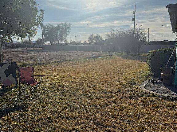 This classic brick home features a beautiful lush grass irrigated yard. Lot is close to a 1/2 acre and completely fenced in. Mature orange and grapefruit trees. Cozy 3 bedroom 1 bath home with a large den with a closet which maybe converted into a 4th bedroom. Saltillo title thru out most of the home. Refrigerator, washer and dryer included. New zoning laws allow for 2 guest homes to be added on s single family property, this lot has room to accommodate. Covered carport fits two cars. Two sheds in backyard convey. One shed large enough to fit a car. Possibilities are endless. Elementary school and high school both a 5 minute walk away.