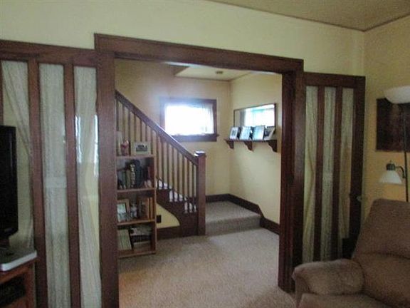 OLD WORLD CHARM with many of the current updates. 4 bdrms, 2 baths, dining room, Built-ins, French Doors, wood floors, back den office leads to large deck, second floor patio doors lead to back porch, oak kitchen cupboards with new counter-top and sink. Newer: roof, electrical, furnace, siding and windows (except enclosed porch)