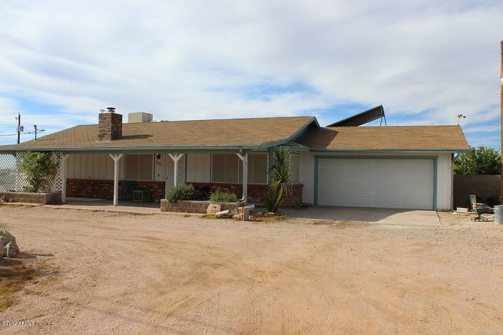 Amazing views, Beautiful sunsets. Great house. Features granite counters, oak cabinets. Free Standing Wood burning stove in living room. Tile in kitchen, baths, entry. Solar hot water heater installed 2011.(balance 10 yr warranty) Seller will credit $6000 for new roof or will complete prior to escrow so buyer gets full roof warranty. 2 car garage has included washer/dryer. Gazebo with heated spa. 3 sheds. Seller will provide a 1 yr. home warranty (excludes spa)for worry-free living. Full 1.25 Acres with block fence w/RV gate around rear of home. (Lot extends beyond fence to bottom of wash) Fresh paint inside. Sun Screens. All Carpets to be cleaned at close of escrow. On metered water, septic. As worry-free as possible.