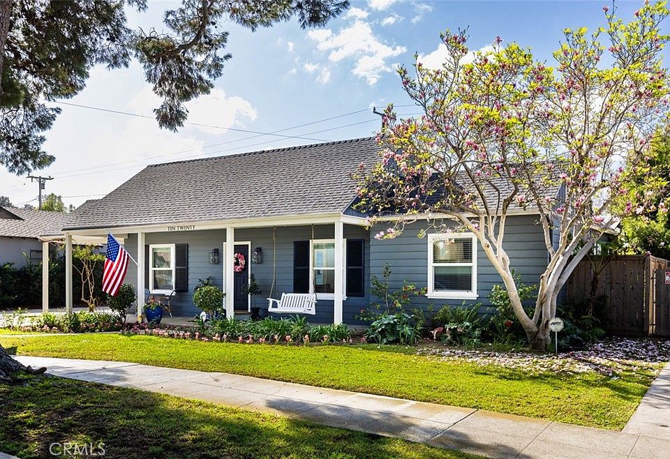 This beautifully remodeled American Craftsman-style vintage charmer in the Washington Square neighborhood, built in 1936, blends timeless elegance with modern updates. It is the details that will make you love this home, like the welcoming front porch with a swing, the antique iron speakeasy in the front door, the refinished hardwood floors offering a warm, inviting atmosphere, and the built-in features and wide crown molding that homes of this quality offer. The renovated kitchen, completed in 2024, features stunning quartz countertops, soft-close cabinets, and newer appliances, including a double oven—ideal for the home chef. The breakfast nook with a few of the garden is a perfect spot for quick meals or homework. The elegant dining room is adorned with Schumacher wallpaper and wainscoting, creating a sophisticated space for entertaining. The spacious living room boasts a stately fireplace, built-in cabinetry with decorative lighting, and French doors to the patio, providing a perfect place to unwind. 3 spacious bedrooms and 2 bathrooms, both have been meticulously remodeled, showcasing a luxurious Roman-style tub for ultimate relaxation. New wood French doors bring in an abundance of natural light. Additional updates include vinyl windows installed in 2017 and recessed lighting throughout many rooms. The new roof, installed in 2024, provides peace of mind for years to come. Step outside to the charming backyard, situated on an extra-deep lot, where an expansive pergola with flagstone hardscape and a concrete patio complete with vintage outdoor fireplace create an ideal space for outdoor entertaining. Passion fruit vines, multiple roses including one that is the star of yard growing over an arbor in the spring, and vibrant bougainvilleas enhance the relaxing atmosphere. Garden beds have tomatoes and vegetables growing, and plenty of grass offers room to play or just enjoy the day. The Washington Square Neighborhood is a slice of Americana itself. Full of tree lined streets with vintage homes and bungalows, some over 100 years old, the neighborhood invites you in with its events and charm. Close to freeways and just a few minutes to OCSA and Santa Ana College, this home perfectly balances vintage character with modern upgrades, making it an absolute gem.
