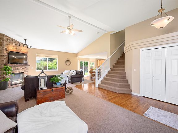 Centrally located in Liberty lake so you can enjoy the trails, parks and shopping. Open concept Light and Bright living with vaulted ceilings. The updated kitchen with granite counters is a delight to prepare a great meal. Beautiful white trim and new doors modified this lovely home.Corner stone fireplace accentuates this large living room with beauty and comfort. All the bedrooms are upstairs and are oversized! Owners suite with private balcony for a little quiet time and mountain views. The basement features an Egress huge living area and if you need a 5th bedroom the other end of the room has an Egress window and closet already in place. The 4th egress bedroom is downstairs with a large bath next door. Enjoy fun days and summer nights in the SUPER Private, wonderfully lanscaped backyard, and it's even low maintenance with a drip system and concrete curbing. Fenced side yard for the animals. Oversized 3 car garage with 3 overhead storage racks.