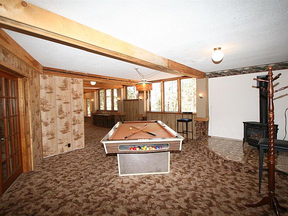 Rustic mountain style home with easy access off a paved County road. Original owners? second family vacation home, situated among the trees. Wonderfully designed with two full living spaces, main level includes rough sawn pine vaulted ceilings, two story Blue Mexican stone fireplace, adorned by a wall of windows. Full kitchen with stainless steel appliances, large living room, dining area, and 2 main level bedrooms with upper level Master Suite, craft or office area and loft overlooking the fireplace and living area. Lower level is a full walk-out, large windows, with 2 separate exterior entries, complete full 2nd kitchen, dining room, and family room. Also includes a large recreation room with surround of windows bringing in loads of sunlight. Three fireplaces within this home, natural gas plumbed, in addition to an exterior grilling area, and an expansive 900 sf deck to enjoy the peace and serenity of the area. Beamed ceilings and custom carved banisters from a local craftsman. Bring the family along for a wonderful mountain retreat!