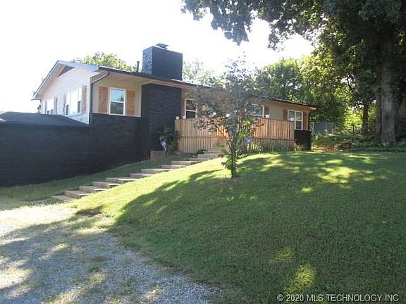 3 bedroom, 2 bath home in Fort Gibson School District on about 1.5 acres. New paint throughout. Both bathrooms remodeled. Fireplace in living room. Fully remodeled basement with main room previously used as a bedroom. Full bath, eating bar, & living/recreation area in basement. Heat pump installed. Large storage room and mudroom in basement combine for 456 ft. Massive 624 square feet garage with ample storage space. Beautifully remodeled front porch. 768 sq ft shop in back yard with 608 sq ft lean to.
